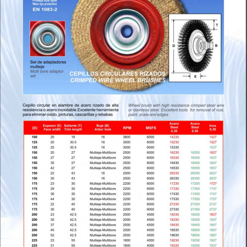 Cepillos de Acero Circulares Rizados Multieje-Multibuje Para Uso en Amoladoras de Banco Marca FPL