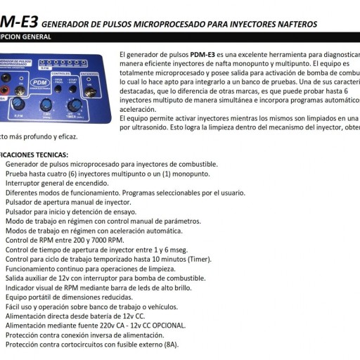 Generador de Pulsos Para Prueba de Inyección Electrónica (Inyectores) Motores Nafta (Nafteros) Marca PDME3
