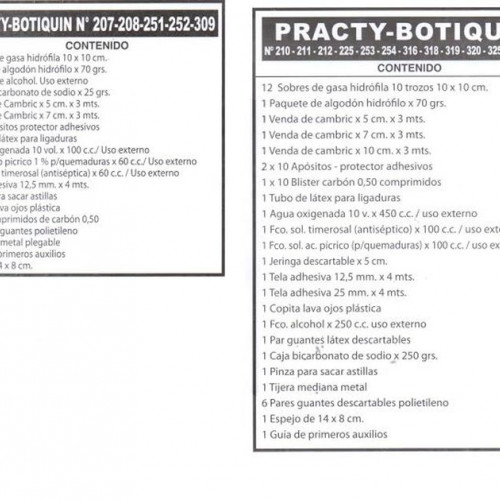Contenido de Productos y Medicamentos Que Incluyen Los Botiquines Según Modelo PRACTYBOTIQUIN