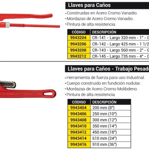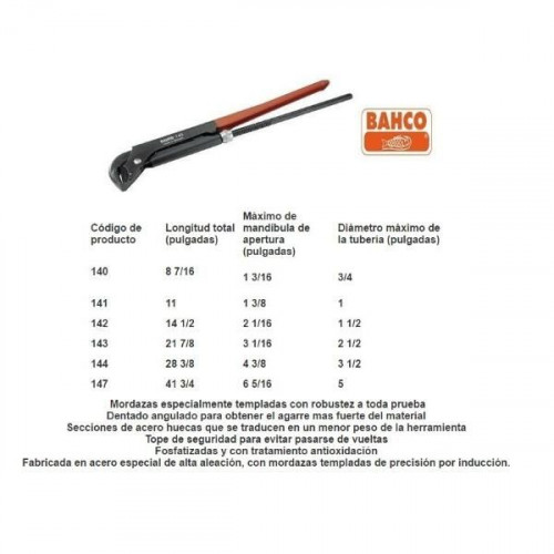 Llaves Para Caño Tipo Sueca Marca BAHCO 140-141-142-143-144-147 Con Sus Capacidades y Medidas
