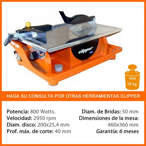 Cortadora de Ceramica Profesional Clipper 1,2 HP Disco 200 mm