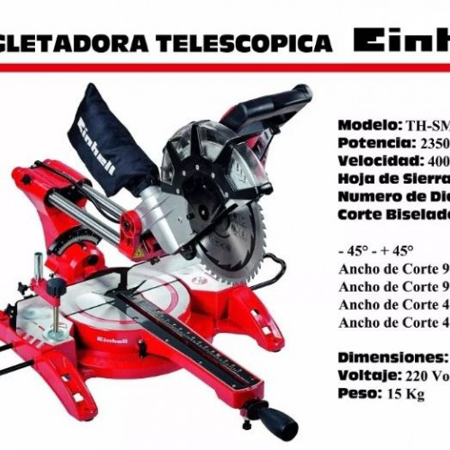 Ingleteadora Telescópica Desplazable con Hoja de 10” y Motor de 1.800w (4.000rpm) Marca EINHELL TCSM254
