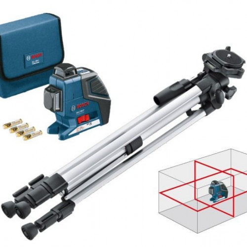 Nivel Láser Doble Ventana De Proyección Cúbica/Cubo de 2 Líneas Con Trípode y Posibilidad de Usar Receptor LR-2 Para Prolongar el Alcance Desde 15m a 80m y Uso Exterior Marca BOSCH GLL 2-80P+BT150