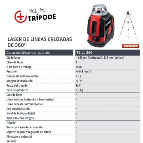 Nivel Láser en cruz (Líneas Cruzadas) Proyección 360º Con Péndulo y Trípode Marca EINHELL TE-LL 360