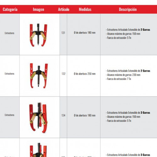 Extractores Articulados Extensibles de 2 y 3 Garras Marca EXTRAPOL Modelos 131-132-134-135