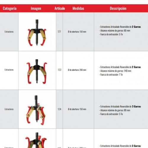 Extractores de 2 y 3 Garras Articulados y Reversibles Marca EXTRAPOL Modelos 121-122-124-125