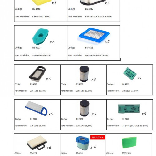 Filtros De Aire Para Motores a Explosión Nafta/Nafteros Marca BRIGGS & STRATTON/POULAN