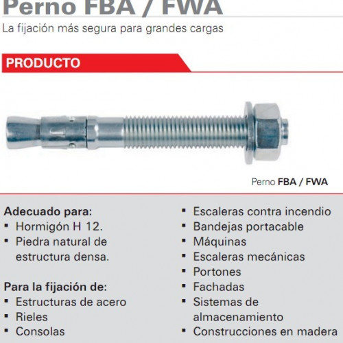 Fijación (Broca) Tipo Anclaje Para Hormigón Perno Inox Con Tuerca Marca FISCHER FBA/FWA