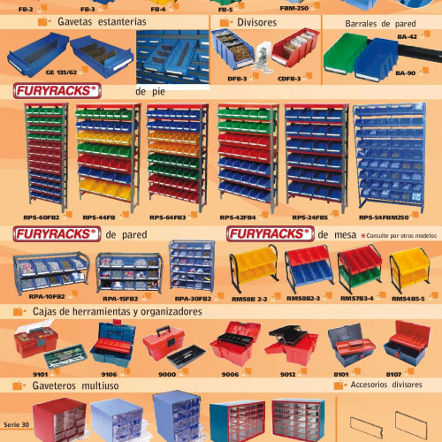 Gaveteros Organizadores Plásticos Multiusos de Mesa y Tipo RACKS Encastrables Marca FURY-FURYRACKS-FURIBINS