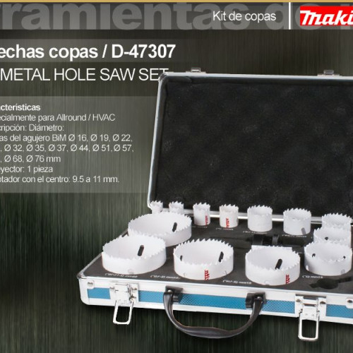 Juego Kit de Sierras Copa Bimetálicas Para Uso En Acero Con Soportes y Maletín Marca MAKITA D-47307