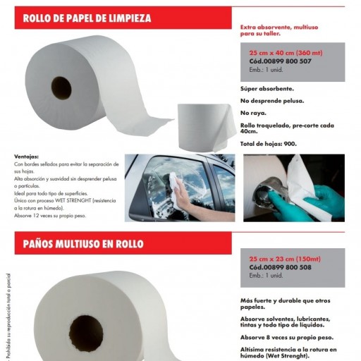 Papel de Limpieza Ultra Absorbente Sin Pelusa Para Usar en Vidrios y Todo Tipo de Superficies Con Precorte Rollo 360 Metros Marca WÜRTH 00899800507