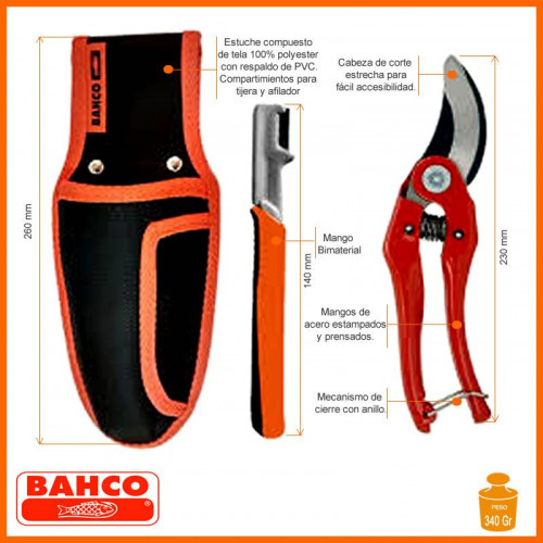 Set de Tijera De Poda 230mm, Afilador Manual SHARP-X y Cinturón Portaherramientas Marca SANDVIK-BAHCO
