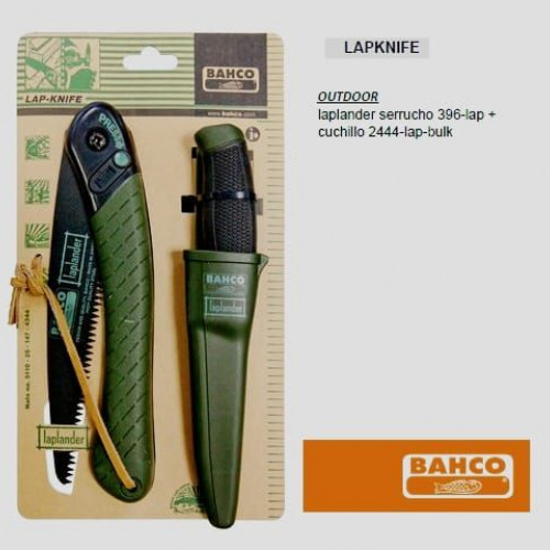 Serrucho De Poda Plegable Dentado XT Con Cuchillo Multiuso Con Vaina Marca BAHCO SANDVIK 396-LAP+CUCHILLO 2444-LAP-BULK LAPKNIFE
