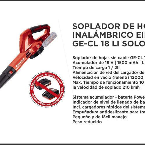 Soplador Barredor de Hojas Inalámbrico con Tecnología LITHIUM 18V Recargable Marca EINHELL GE-CL 18 LI SOLO
