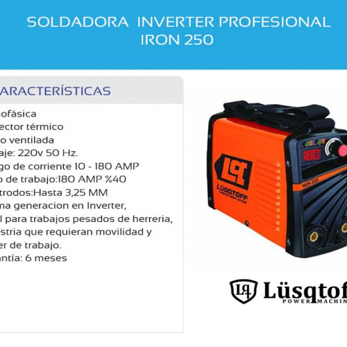 Soldadora Para Electrodos (MMA) Con Tecnología INVERTER Digital Marca LÜSQTOFF IRON-250