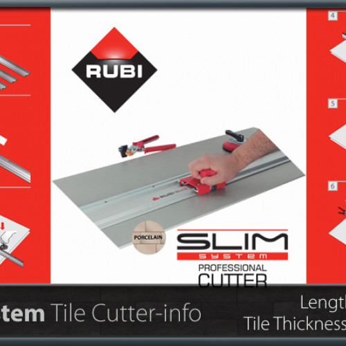 Sistema de Corte Para Porcelanatos Muy Largos hasta 3,3mts Con Reglas de Aluminio Encastrables y Ventosas Marca RUBI SLIM SYSTEM