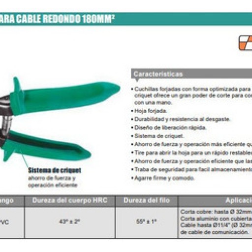 Tijera Cortacables Eléctricos de Cobre y Aluminio Hasta 250mm2 de Sección Con Crique Marca PROSKIT SR537