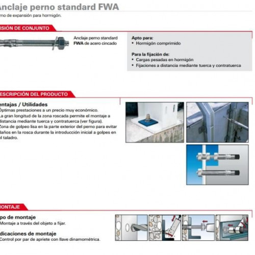 Anclaje Tipo Perno De Expansión Con Tuerca Marca FISCHER FWA