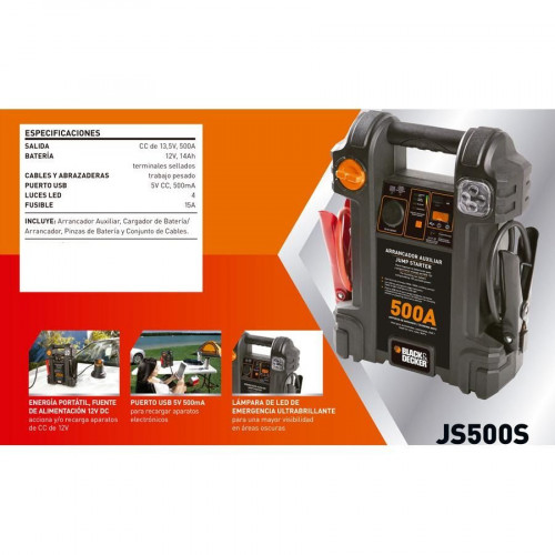 Arrancador Instantáneo Recargable Tipo BOOSTER con Compresor Incorporado 12v-500Amp Marca BLACK & DECKER JS500