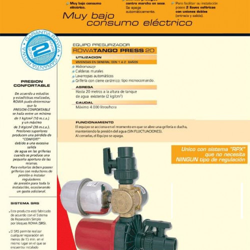 BOMBA PRESURIZADORA HASTA 2 BAÑOS AUTOMÁTICA ROWA TANGO PRESS-20