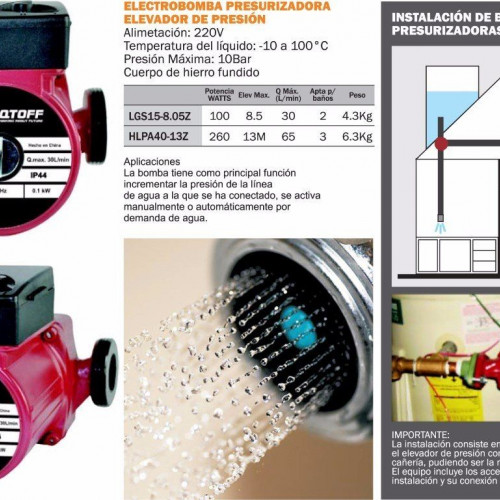 Bomba Presurizadora Para Tanques de Agua Domiciliarios con Hasta Tres Baños Marca LÜSQTOFFLGS15-8.05Z/HLPA40-13Z