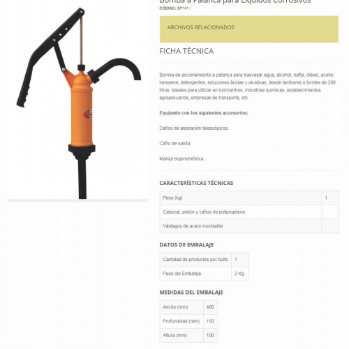 Bomba Manual Plástica a Gatillo Para Trasvase de Agua y Combustible Marca BTA 193078