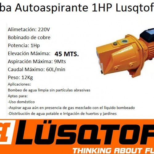Bomba Autocebante Autoaspirante Centrífuga de 1HP Monofásica Marca LÜSQTOFF SWP255A