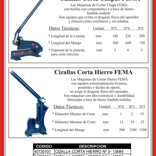 CIZALLAS GUILLOTINAS PARA CHAPA O HIERRO REDONDO MANUAL MARCA FEMA
