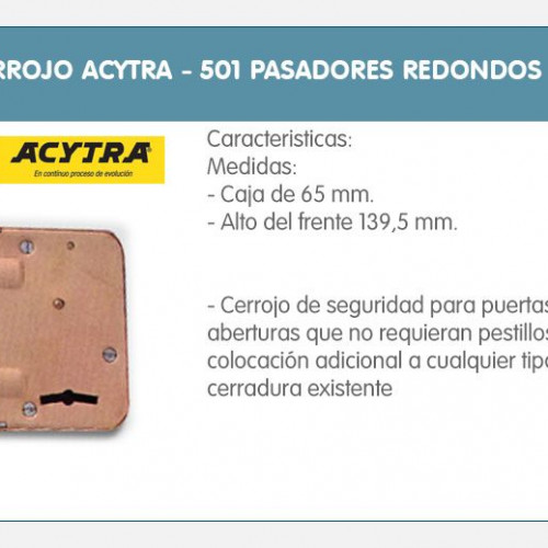 Cerrojo De Seguridad Adicional Para Puertas Con Llave Doble Paleta Marca ACYTRA 501