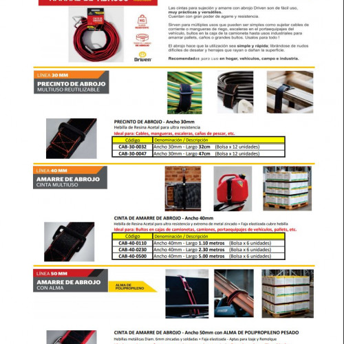 Cintas/Precinto de Amarre y Sujeción de Cargas Con Sistema de Abrojo (Velcro) Multiuso Marca DRIVEN
