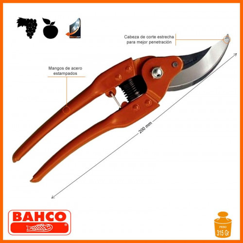 Tijera De Podar a Una Mano Profesional Para Frutas y Flores Marca BAHCO-SANDVIK P110-20F