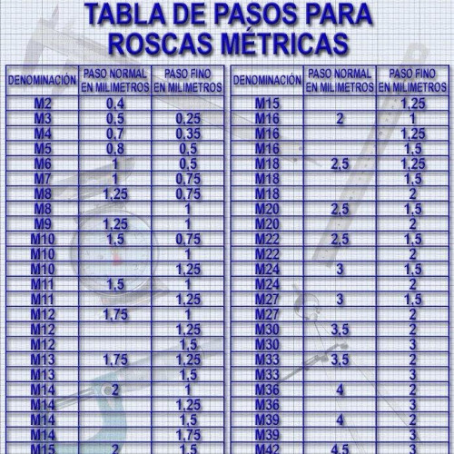 TABLA DE PASOS NORMAL Y FINOS PARA ROSCAS MILIMETRICAS