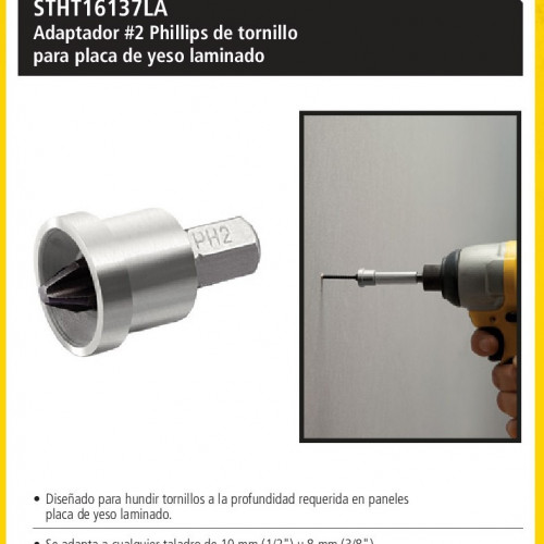 Punta Philips Para Atornillar Autoperforantes En Durlock y Placas de Yeso y Madera Con Control de Profundidad Tipo Campana Incorporado Marca STANLEY STHT16137LA