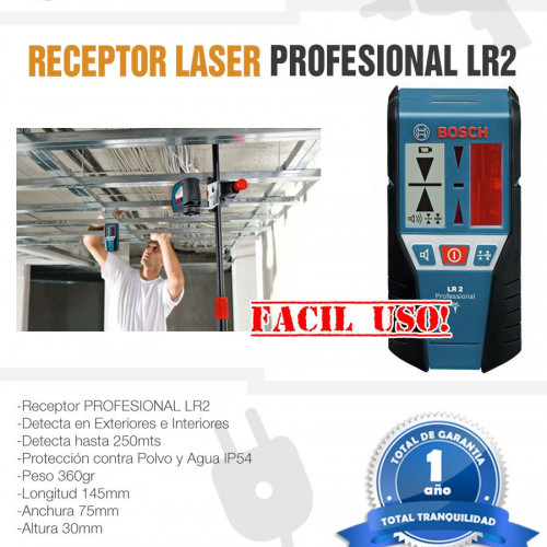 Receptor Para Niveles Láser Que Prolonga Hasta 250mts el Alcance en Interiores y Exteriores Sin Incrementar el Error (1mm) Para Uso En Niveles De Líneas Tipo GCL y GLL Marca BOSCH LR2