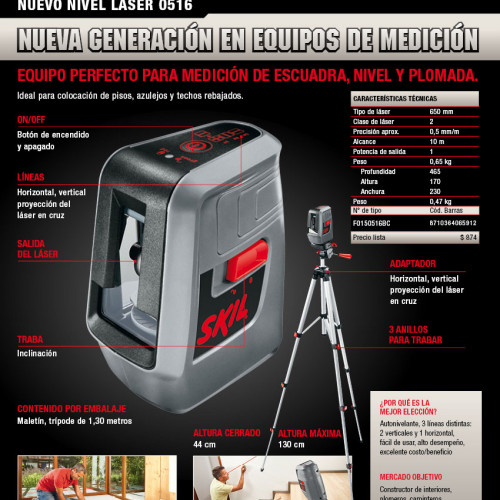 Nivel Láser en Cruz (Vertical-Horizontal) Completo Con Trípode de Aluminio SKIL 0516