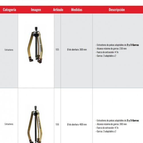 Extractores de Poleas Exterior Adaptables a 2 y 3 Garras Marca EXTRAPOL Modelos 105-106