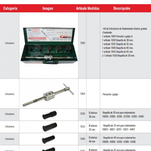 Extractores De Rodamientos Internos (Interiores) Grandes Con Martillo Inercial en KIT (Juego) Marca EXTRAPOL Modelos 1000-1004-1030-1035-1040-1045-1050