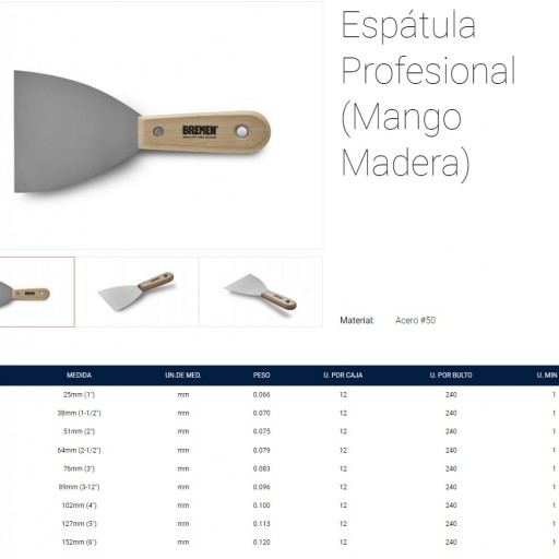 Espátulas Profesionales Tipo Pintor Flexibles de Acero con Cabo Madera Marca BREMEN