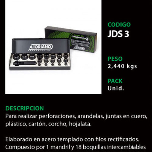 JUEGO DE SACABOCADOS CON BOQUILLAS CAMBIABLES 19 PIEZAS Nº3 TORIANO