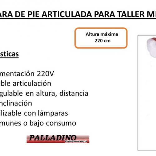 Lámpara Velador De Pié Articulado 220V Para Taller Mecánico Marca PALLADINO