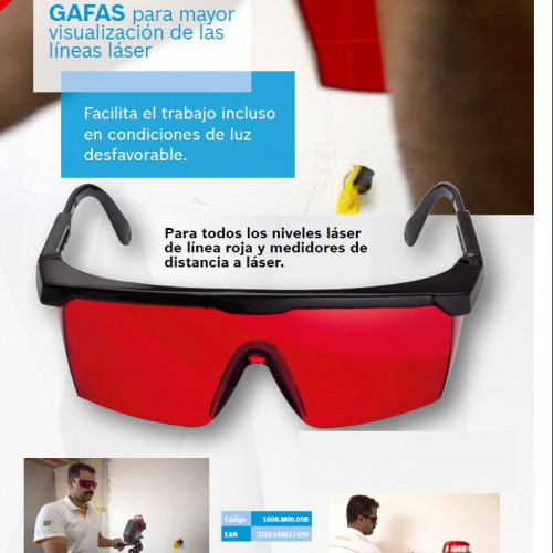 Lentes Gafas Rojas Para Lectura De Trazado de Niveles Láser En Exteriores Marca BOSCH 1608.M00.05B