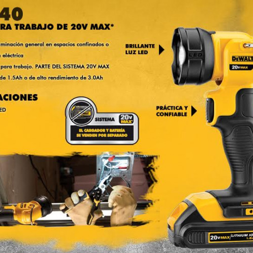 Linterna Inalámbrica Recargable Lithium Con Tecnología Led y Batería 20v Marca DeWALT DCL040