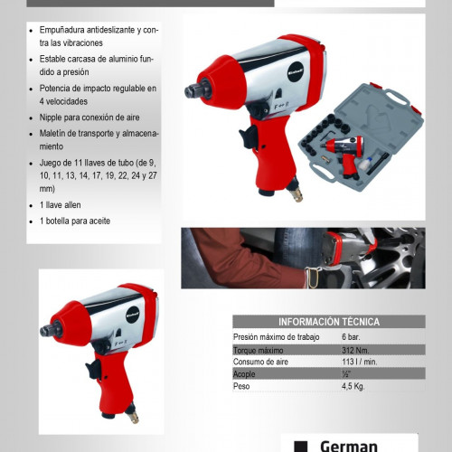 Llave de Impacto Tipo Pistola Neumática Con Encastre de ½” Variable Con Maletín y Tubos Marca EINHELL DSS 260/2