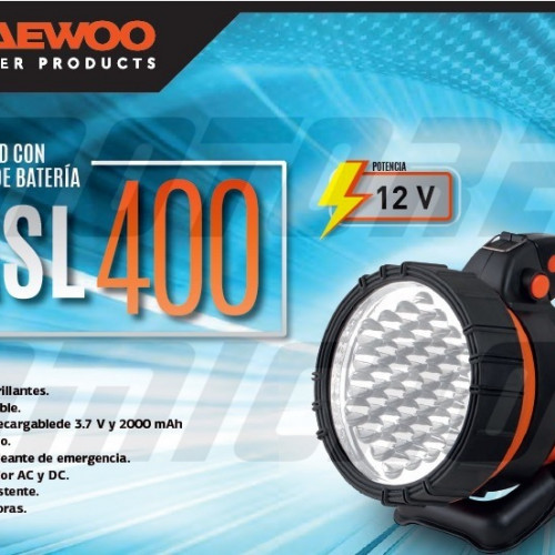 Linterna Proyector Reflector Recargable Inalámbrico de 37 LED y Batería de LITIO 12v Marca DAEWOO DASL400