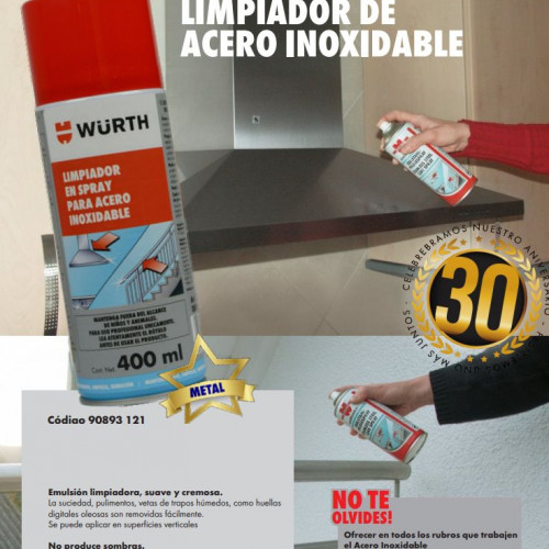 Limpiador-Conservador de Acero Inoxidable/Mármoles En Aerosol Spray Marca WÜRTH 90893121 (3M)