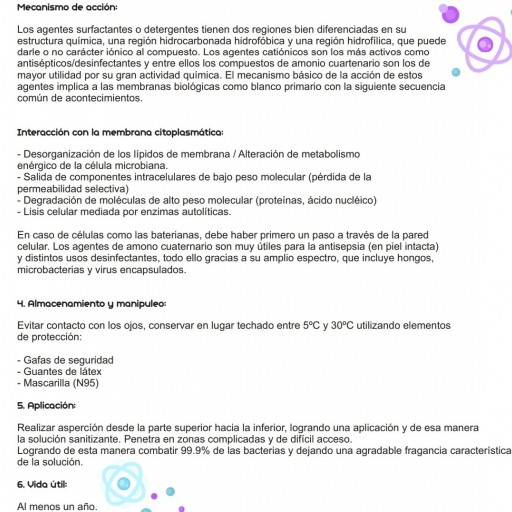 Liquido Sanitizante-Germicida-Sanitizador Que Reemplaza Cloro y Alcoholes Para Uso Directo Con Mochilas/Pulverizadores en Base a CLORURO de BENZALCONIO