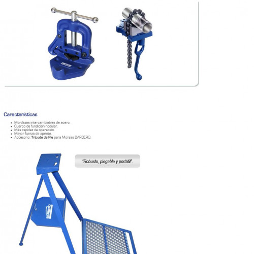 Morsas Para Caños/Tubos a Cadena y Tipo Bisagra Con Sus Respectivo Banco de Trabajo Tipo Trípode Marca BARBERO