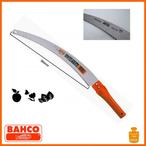 Serrucho de Poda Manual Semicurvo Con 11 Dientes Tratados y largo de 12” o 14” Mango Madera Marca BAHCO-SANDVIK TRADITION 4212-6T/ 4214-6T