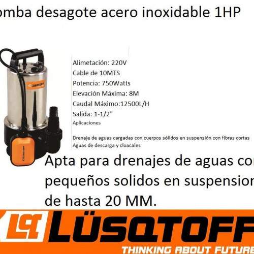Bomba Sumergible Cloaquera De Acero INOX Para Desagote de Cloacas y Piletas Con Agua Turbia Marca LÜSQTOFF LSI-750
