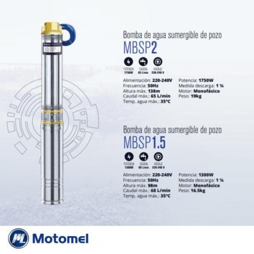 Bomba Sumergible (Sumergida) de Agua para Pozo Profundo Inox Marca MOTOMEL MBSP